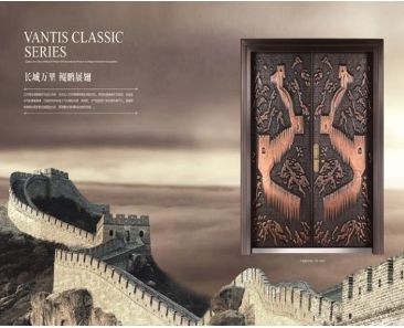 梵蒂斯与中国美院合作,设计推出的“万里长城”装甲门,引用华夏文明烙印——万里长城,图案气势恢宏,浓浓的历史厚重感,图案组合形成双翼之状,寓意中华民族展开双翅,伟大复兴指日可待。