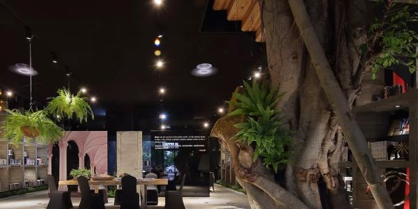 其实,从图片上就可以感受的到乐乐书屋有一种自然的气息,带有东方符号的自然元素与整个空间相得益彰,散发令人着迷的东方美学艺术氛围。
