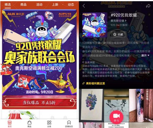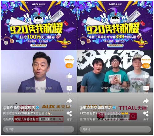 奥克斯作为家电界的高级营销玩家,在刚刚过去的920奥粉节,又输出了一次高质量的品牌营销。此次奥粉节联合抖音发起主题为#920凭我敢耀 挑战赛,邀请了众多富有创造性的抖音大V,发挥特长花式DIY奥克斯空调并且在电商站内首次与“奥”字品牌联合营销,为年轻用户提供一个展现自己的舞台。