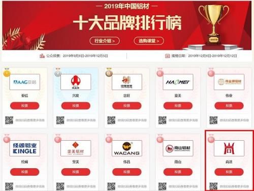 尚进纱窗进入2019年中国铝材十大品牌前十