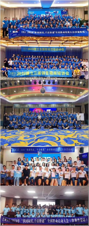 2019年9月7日始,热烈庆祝中华人民共和国70周年,德立淋浴房先后在滇贵桂站、川渝陕站、湘鄂赣站、津翼晋蒙站、江苏站、广东海南站、东北站、福建站、安徽站、浙江站、上海站等地区举行了声势浩大的“举国同庆·千店钜惠”全国联动促销活动启动大会,上下一心,赋能终端,全面打响国庆促销大战,为全国消费者带来一场前所未有的硬核全民狂欢盛典。据悉,此次活动是德立今年来规模最大的一次全国性营销联动盛会!