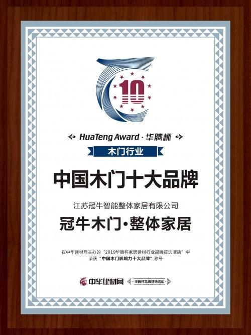 冠牛木门·整体家居折桂“华腾杯2019中国木门影响力十大