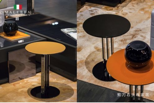 新推出的圆几在色彩上的运用也让人为之眼前一亮,利用多彩的玻璃材料搭配精致的金属底座,从古铜金到亮橘色,让家居充满活力与特有的触感。