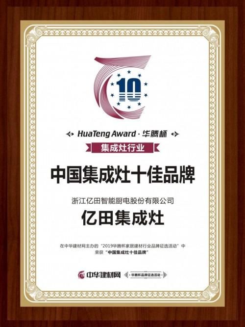 (亿田集成灶获中国集成灶十佳品牌奖项)