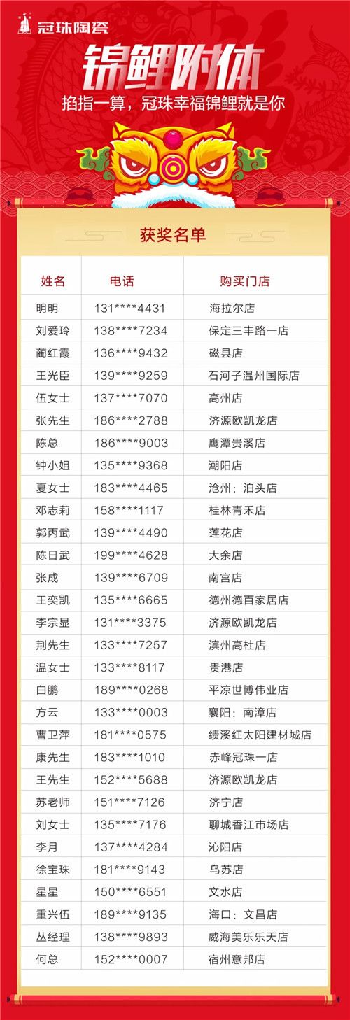 锦鲤现身! 冠珠“幸福锦鲤节”活动第一批中奖名单公布