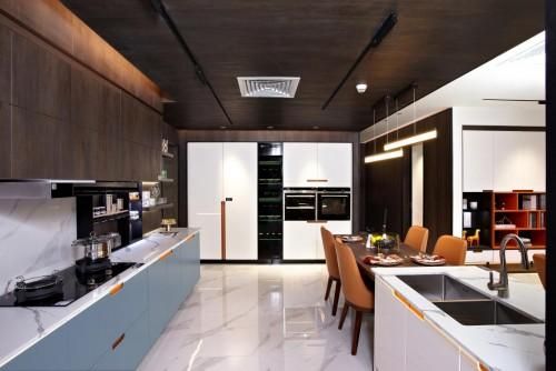 米兰之光V2系列通过材质多元化打造富有质感的现代轻奢空间,配色经典绝美,打破常见的“安全配色”组合,以时尚新潮的配色为家居空间带来新意。门板以易于清洁打理的材质为主,并引入新型环保材料PET板材,为客户提供更多选择。简约的设计,定制高度的突破,细节配件的运用,多角度发力,为用户打造“有颜值有设计力讲实用”的家居空间。