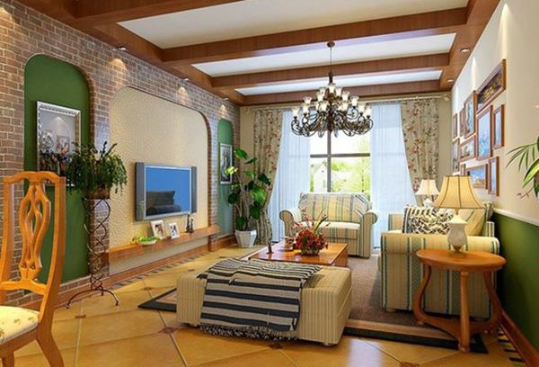 英式田园风格主要以条纹、格子的样式为主,其颜色一般以田园绿色为主,装修的整个效果给人一种返璞归真之感,而室内的灯光装饰一般比较暗淡,给人一种朦胧美。整个房屋的装修与外面的环境配合的天衣无缝。