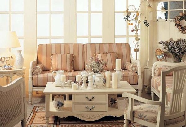 英式田园风格家具多以奶白象牙白等白色 为主,高档的桦木、楸木等做框架,配以高档的环保中纤板做内板,细致的线条和高档油漆处理,都使得每一件产品像优雅成熟的中年女子含蓄温婉内敛而不张扬,散发着从容淡雅的生活气息,又宛若姑娘十八清纯脱俗的气质,无不让人心潮澎湃,浮想联翩。