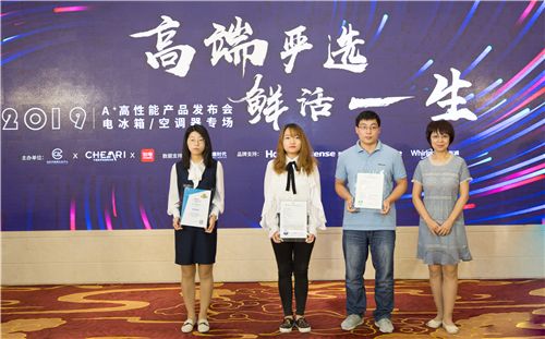 9月23日,2019A⁺高性能产品发布会(冰箱/空调专场)在北京召开。本次大会以“高端严选 鲜活一生”为主题,由北京中轻联认证中心、中国家用电器研究院和知电联合主办,并得到北京中怡康时代市场研究有限公司的大力支持。