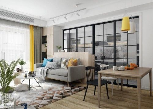 客餐厅是业主日常活动和会客的主要场所,但面积不大,长时间待着难免觉得压抑。业主希望将客餐厅与阳台打通,阳台做成半落地窗便于采光,让客餐厅更通透明亮。好莱客设计师考虑到业主烹饪以西式简餐为主,设计师连客餐厅和厨房间的墙体也大胆打通了,装成黑框玻璃推拉门来增加客餐厅的通透性,客餐厅瞬间大了不止一倍。