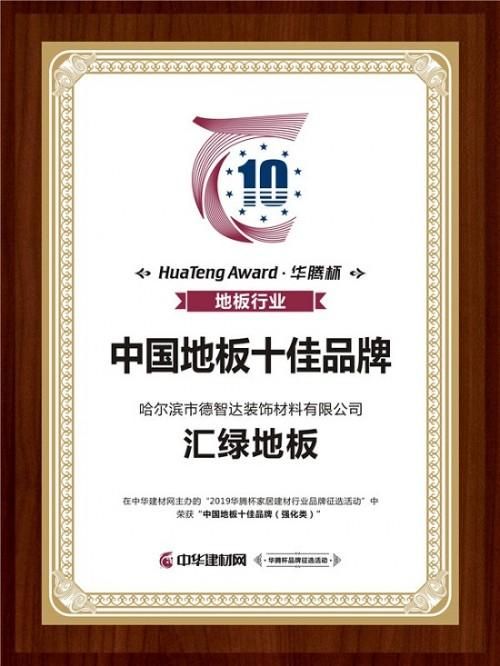 汇绿地板荣获2019华腾杯“中国地板十佳品牌(强化类)”