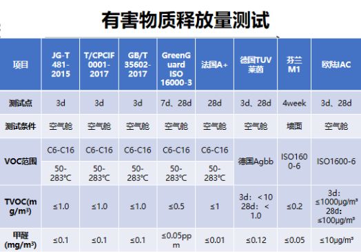 检测机构一般是用空气舱模拟测试的,他们会设定一些环境参数,比如说规定的温度和湿度,规定的空气循环速度等等,凭借这些环境参数在多个不同时段分段检测,如24小时、72小时或者28天等时段,在这个规定条件下测出来的完整的检测数据才具备参考价值。