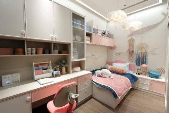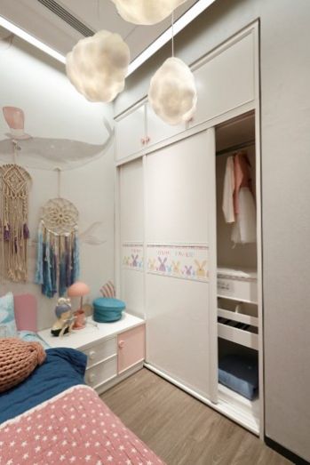 儿童房与大人房配色截然不同,但是在收纳方面的需求是一样的。很多家长都有切身体会:有了孩子之后,家里的东西越来越多!如果放任孩子胡乱堆放她的玩具、衣服、书籍,不仅“有碍观瞻”,而且还会让孩子养成任性随意的习惯,并且自理能力变差。