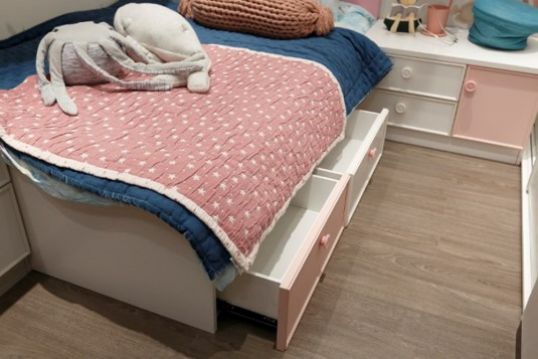 “过家家”是小女孩喜欢的游戏,经常是整个房间地板上都铺满她的“奇思妙想”。欧铂丽家居定制的设计师们也非常贴心地开发了床底的大容量空间,孩子在地板上游戏的时候,零零碎碎的玩具随手就可以取放。