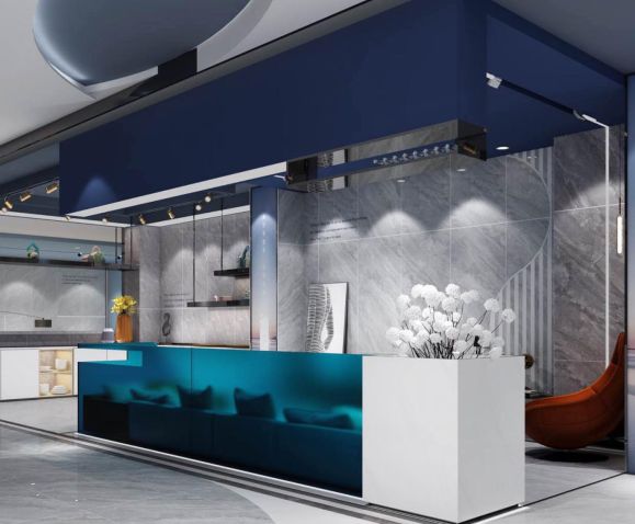 对于一家瓷砖品牌来说,一座展厅就是一张企业的名片,是展示自身产品的窗口,是品牌与顾客沟通的平台。所以展厅的整体大小,色调搭配,设计手法都应该根据自身品牌调性和产品特色来设计。威尔顿瓷砖本次展厅升级虽说是每年两次的例行升级,但却演绎出了不一样的“蓝调艺术”,完美贴合了自身品牌和产品升级的全新形象。