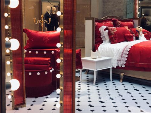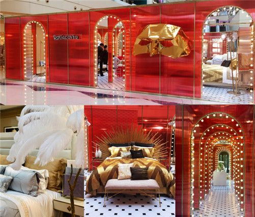 9月4日至9月10日为期一周的快闪活动,与罗卡芙久光店联动。现场以大胆感性的红色为主,围绕好莱坞灯珠,入门有特别设计的金色现代的钻石切面面具与白色羽毛烘托主题氛围。活动陈列推出了最新的新巴洛克系列,面料的高级丝滑感受扑面而来,巴洛克风格图案点缀其中。时尚领域常用的驼鸟毛和法式珠片元素抱枕搭配寝品,罗卡芙独有的时尚华美气质呼之欲出。同时还展示了简约非凡的现代系列,稀有的匈牙利奢绒系列。