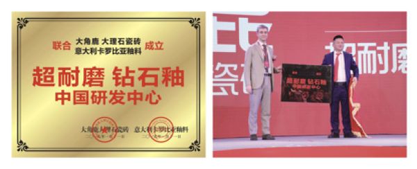 在2018年底,我们团队和意大利卡罗比亚釉料公司共同开发出“超耐磨钻石釉”,这一材料的耐磨系数达到传统釉料的3倍以上。虽然成本也远高于传统釉料,但我们向国家申请了“超耐磨钻石釉”技术专利,这款专利是全球首个针对瓷砖耐磨需求而研发的专利技术。
