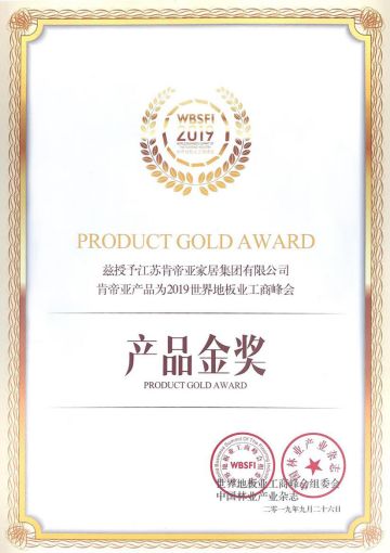 本届世界地板业工商峰会,肯帝亚能够荣获大会组委会授予的“产品金奖”荣誉,既是对肯帝亚研发团队的鼓励和鞭策,更印证了肯帝亚家居集团雄厚的研发实力和技术优势。在伟大祖国70华诞来临之际,作为行业创新担当的肯帝亚,以“创新驱动发展”和享誉全球的超级地板、生物质地板等黑科技产品,以沉甸甸的“产品金奖”,向伟大祖国献礼!