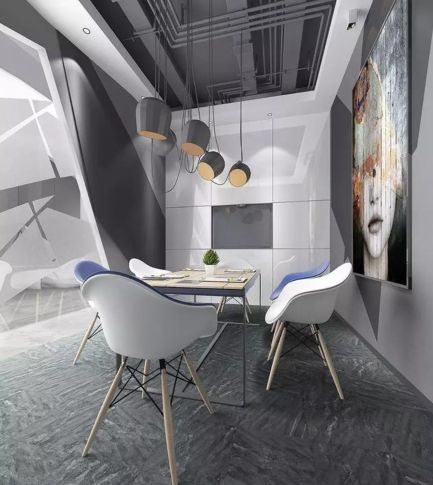 以黑白灰为主色调的产品结合具有设计性元素的软装搭配,符合了年轻人自由开放不谋而合的思想,通过砖面的花色打造出了一个简奢质感现代的艺术空间。