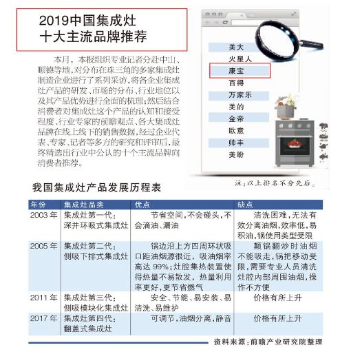 9月27日,《信息时报》推出“厨房电器迈入集成时代”特刊,并发布了2019中国集成灶十大主流品牌推荐榜单,康宝与美的、火星人、美的等一同跻身为“2019中国集成灶十大主流品牌”。