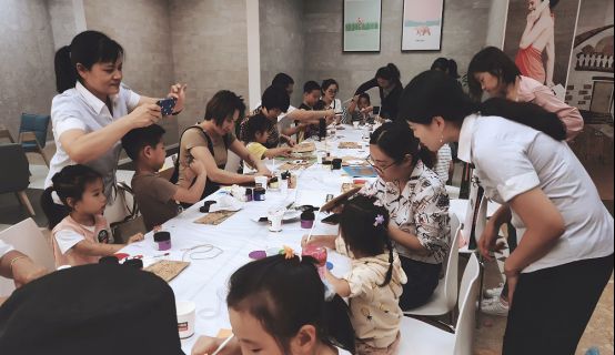 欢快而热烈的会场氛围在手作活动开始后便空前高涨的进入了白热化的阶段,在手作老师的现场指导下,孩子们都变身为小小艺术家,兴奋地挥起画笔开始了自己的创作,在软木之上一笔笔描绘出他们的奇思妙想。家长们也被这种纯真的快乐所感染,兴致勃勃地给孩子们打起下手,在这种无我的匠艺空间之中,生机与朝气弥漫了整个空间。所有的爱与温馨都集聚在一个个软木作品之中诉说着那种恒久无私的脉脉温情。看到孩子们的匠心作品,家长们也不禁露出骄傲自豪的表情,纷纷留影记录下这一美好的时刻。