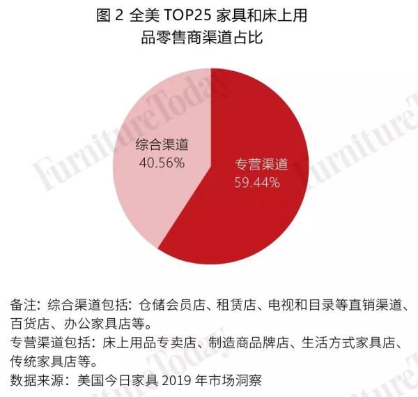 根据统计,在全美TOP25家具和床上用品零售商中,这两类渠道在美国的占比几乎是平分秋色。(见图1)