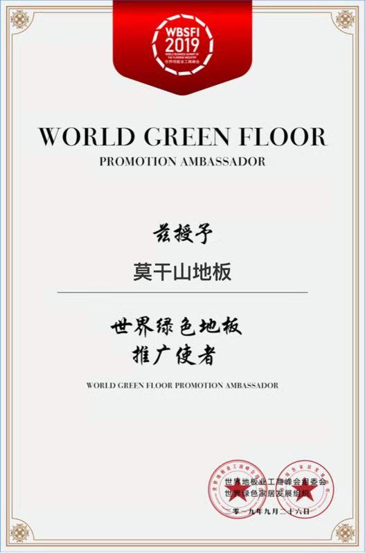 中国是世界地板生产大国和当前消费大国,只有坚持科技创新驱动,时尚引领潮流,走绿色可持续发展之路,中国地板产业才能实现跨越性发展。作为行业的领军者,莫干山地板将一如既往专注环保,开拓创新,聚焦产品,智造健康环保好地板,履行好“世界绿色地板推广使者”的职责,推动行业有序健康发展,共创中国地板行业新未来!