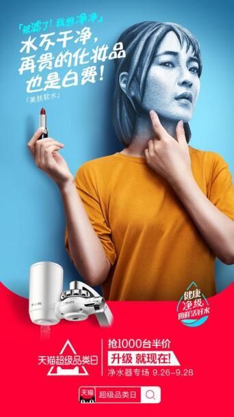 健康“净”级,用鲜活好水。天猫超级品类日继引入高端饮用水新概念后,再次将目光聚焦消费者的生活品质诉求,深挖净水器市场,引领净水器消费升级新浪潮。