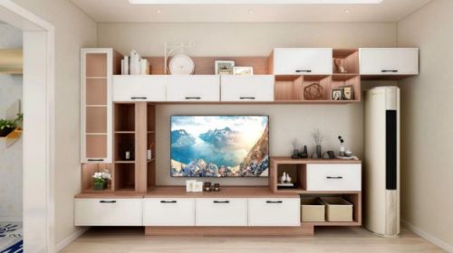 ▲客厅采取对称布局,巧妙规划视听区、休闲区、收纳区、展示区,集强大功能与风格美学于一体,完美承载家人的欢聚时光。空调与家具融为一体,别具匠心。
