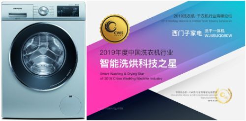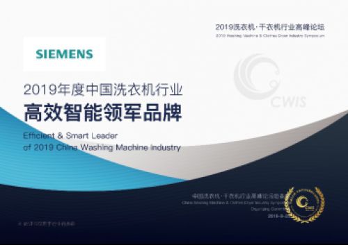 西门子家电荣获“2019年度中国洗衣机行业ž高效智能领军品牌”