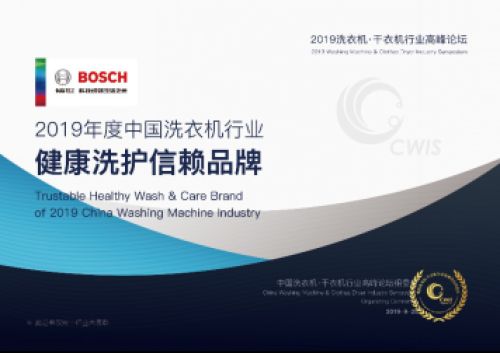 博世家电荣获“2019年度中国洗衣机行业ž健康洗护信赖品牌”