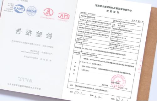 答:有,大王椰阻燃板经严格质检方可上市,由图所示,经国家防火建筑材料质量监督检验中心质检,大王椰阻燃板在可燃性、单体燃烧性能、产烟毒性等级等项目检测中均受检合格,符合燃烧性能难燃B1级的规定要求,按照GB 20286-2006判定,符合公共场所阻燃建筑制品的要求。