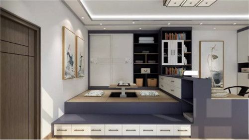 很多人家里选择榻榻米定制,烟雨江南色调显得沉稳;原木色升降台与白色柜体和谐搭配。在中风格的基础上,加入一些现代元素,简单的同时又不失内敛。