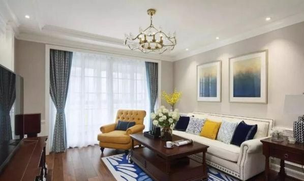 1、首先我们先看客厅,客厅是大家活动最多的地方,所以在视觉上客厅最好明亮一些。从这点上来考虑,则可以选择纱质材料的窗帘,它既可以遮光,起到遮挡阳光的效果,又能起到装饰的效果,可以让客厅更加的舒适、温馨。