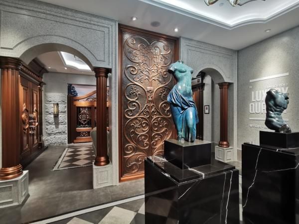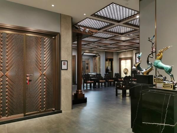 好的产品必须呈现在适合的环境中,才能让其散发出本身魅力。艺和集团入户门艺术体验馆以轻奢艺术风格为主,新现代中国风的铜门馆与极简现代风的装甲门馆相结合,置身其中,不论从何种角度欣赏,都能获取满满的艺术质感。