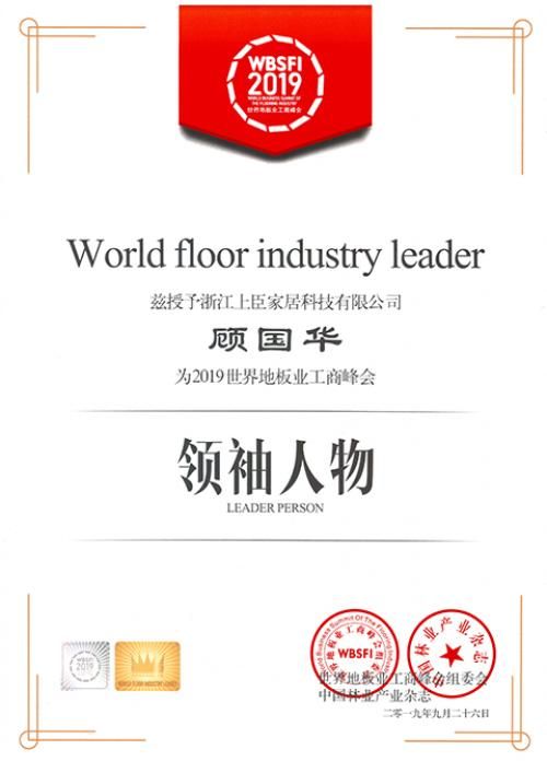 峰会组委会对数十年如一日致力于引领地板行业发展的领军者进行了表彰,上臣地板董事长顾国华被授予“2019世界地板业工商峰会领袖人物”的荣誉称号,这是行业对顾国华先生卓越贡献的高度赞赏。