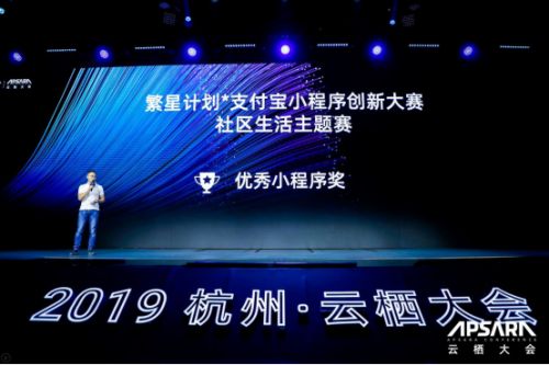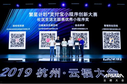2019年9月27号下午,由支付宝开放生态事业部总经理管仲,为斑鸠在内的四家优秀小程序颁发——支付宝小程序创新大赛社区生活主题赛优秀小程序奖。