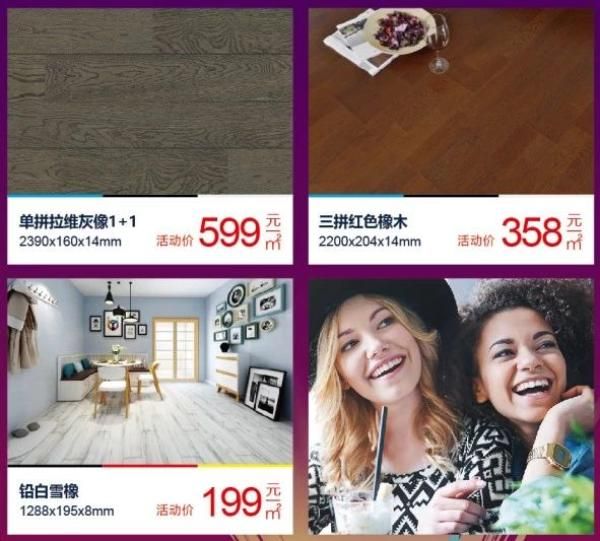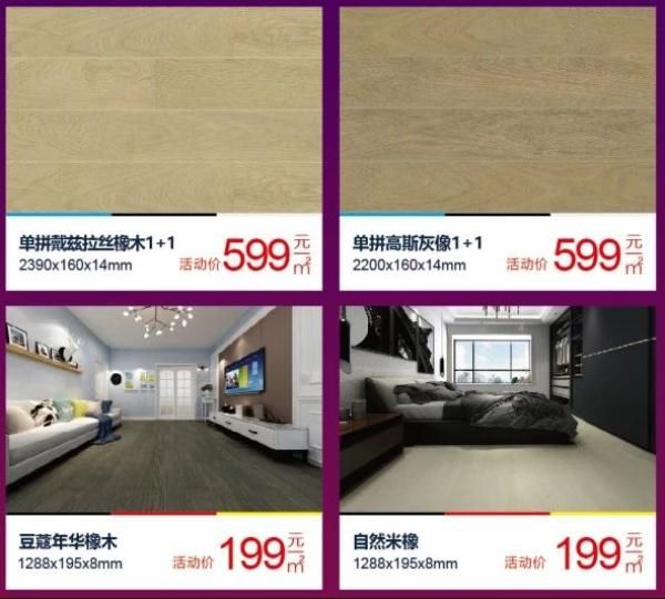 活动期间,欧洲工厂国庆特批,价格直降,三层实木低至358元/㎡,强化复合仅为199元/㎡,更省钱!