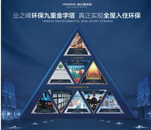 之所以能够实现“全屋入住环保”,正是由于业之峰22年来坚持创新而形成的“环保九重金字塔”,它由五大环保落地解决方案、三大背书、一大承诺组成,缺一不可。它们分别是: