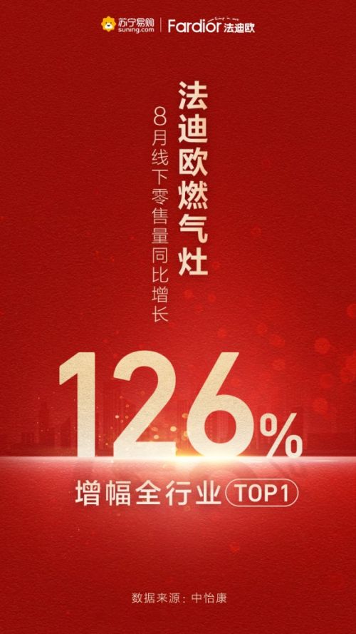 法迪欧厨电品类的黑马姿态在市场销量中表现尤为明显。据中怡康数据,8月燃气灶线下零售量同比增幅中,传统大品牌增幅在10%上下,也不乏有部分品牌呈现负增长状态。而法迪欧则一骑绝尘,以126%的零售量同比增长数据遥遥领先,增幅高居全行业No.1,领涨燃气灶市场。