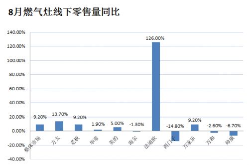 “穷看厅堂,富看厨房”,在上半年整个家电行业走势较低迷的情况下,厨电品类依旧在砥砺前行,寻求突破和提升,其中燃气灶具产业整体保持平稳较快增长。在刚刚过去的8月,燃气灶线下市场零售量上涨趋势明显,同比增长9.2%。其中以法迪欧表现最为出色。以高达126%零售量增幅、8.3%的零售量市场份额占有率,展现了其开挂般的战绩。