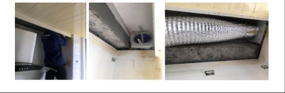 更换烟管时,由于厨房采用的是集成吊顶组合,技师直接拆卸旧烟管,安装新烟管,并用铝箔胶带固定风管与止回阀连接口处以保证密封,有效避免风管的安全隐患。