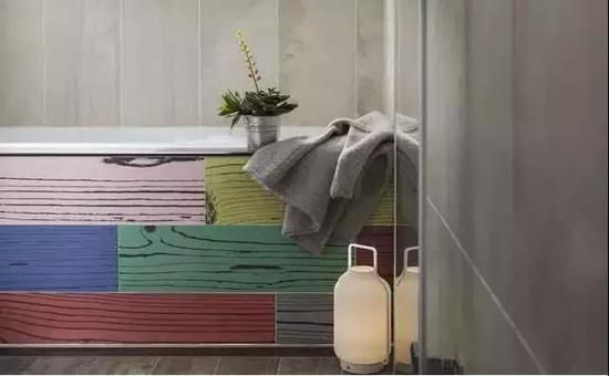 如果你也喜欢木质地带来的纹理和温润质感,不如考虑在浴室铺上木纹砖地面吧!也可以在浴缸外贴上仿旧彩色木纹砖,多彩的颜色搭配让洗澡的心情更加愉悦缤纷!