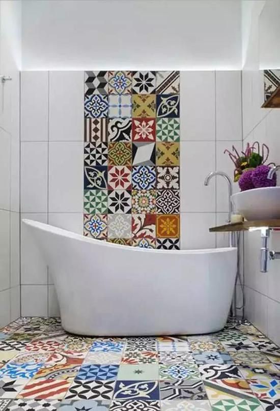 喜欢花砖吗?潮流的花砖恣意地自墙面蔓延至地面,繁复而迷人的图样勾勒出神秘优雅的韵味,让卫浴空间也能拥有独特的艺术美感!
