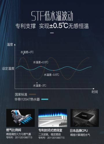 在恒温方面,专利恒温舱和自巡航控温技术是华帝这款产品的标配技术。专利恒温舱可将内部冷热水自动循环流动,调和水温,缓解中途开关水骤冷骤热问题,沐浴时也能实现零冷水效果,同时自巡航温控技术,采用了STF低水温波动技术方案,能精准调控水温,确保水温精准度误差在±0.5摄氏度之内,实现无感温差。
