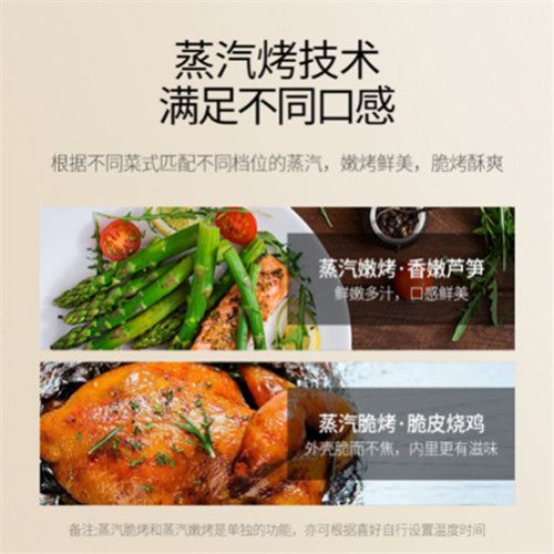 蒸汽辅助烤,可满足于不同口感的菜品,脱脂减盐烹出好味道。根据不同菜式匹配不同档位的蒸汽,嫩烤鲜美,脆烤酥爽。