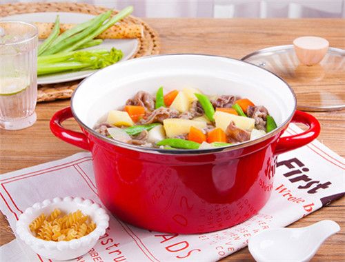 如果你想进行炖煮,珐琅锅是你最好的选择。此类锅拥有良好的导热、储热功能,能有效锁住食物营养,还原味觉精致体验。其主要由高强度石英和长石等组成的硅酸盐矿物质,对人体无任何毒副作用。在金属表面进行瓷釉搪可以防止金属生锈,使金属在受热时不至于在表面形成氧化层,并且能抵抗各种液体的侵蚀,所以在使用珐琅锅烹煮食物的过程中,不会因为高温而产生有害溶出物,并且抗酸碱能力好,不会和食物起化学反应。
