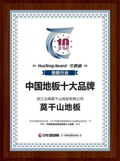 莫干山斩获2019中国地板消费者喜爱十大品牌荣誉