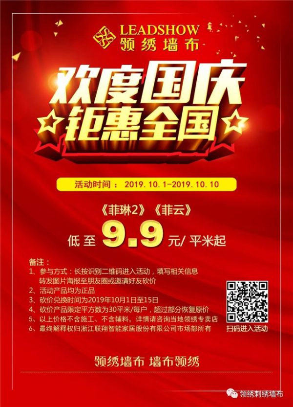 即日起至10月10日,砍到9.9元 ,30平墙布轻松到手!