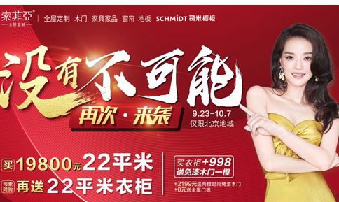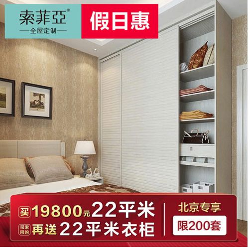迎十一,送豪礼。索菲亚 “没有不可能”再次来袭。北京全屋定制19800元全搞定,你家装修准备好了吗?据了解, 北京索菲亚19800元可以全屋定制6大空间22平,同购司米橱柜再送22平米衣柜。真的很划算!